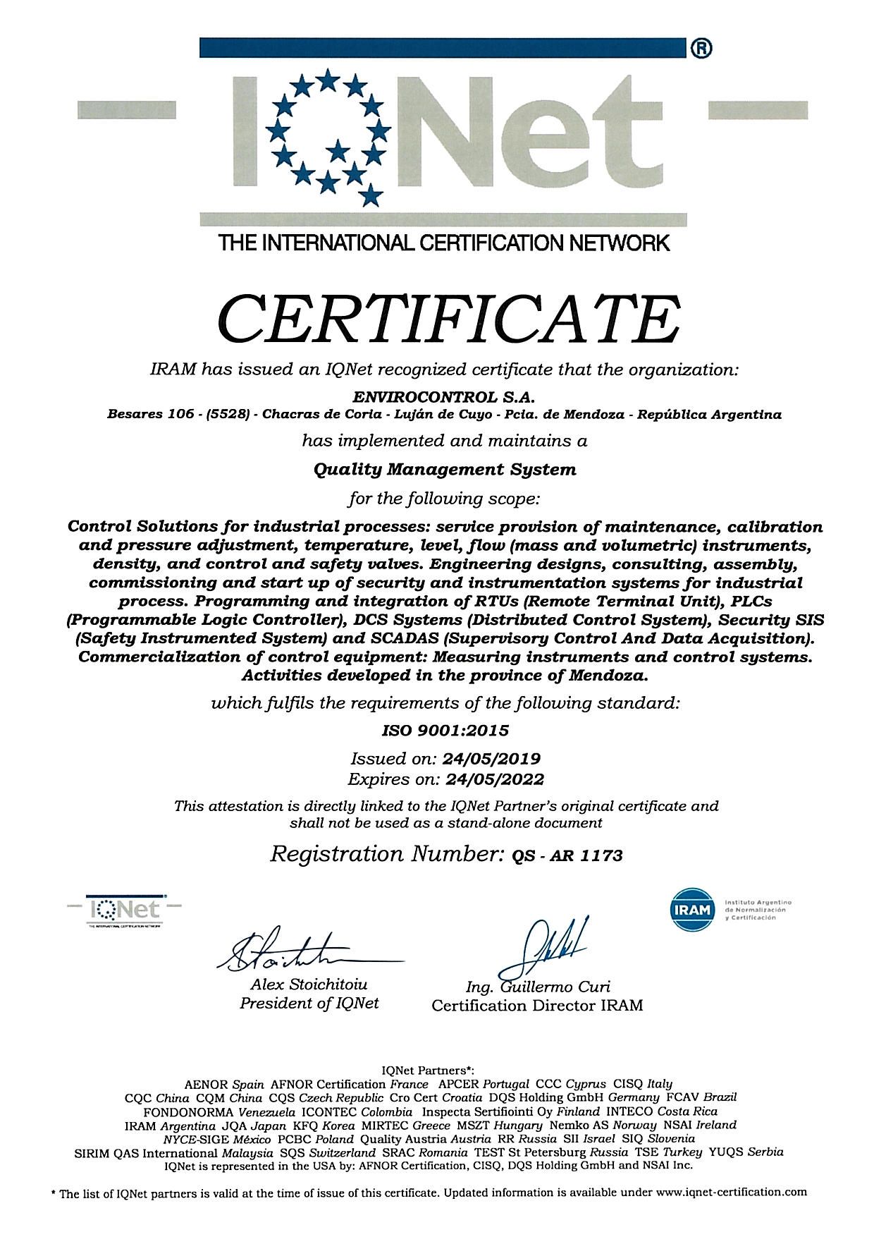 Marketing of control equipment: measuring instruments and control systems. Provision of maintenance, calibration, and adjustment services for pressure, temperature, level, flow (mass and volumetric), density instruments, and control and safety valves. Engineering design, consulting, assembly, commissioning, and start-up. Programming and integration of RTUs, PLCs, DCS, SIS, and SCADA.