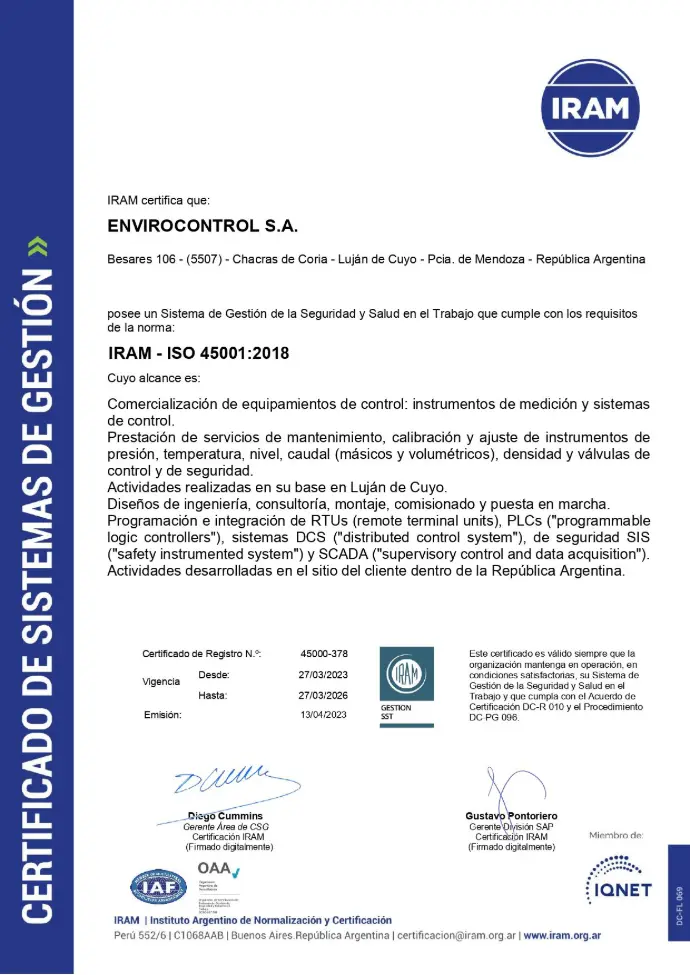 EnviroControl S.A. es una empresa dedicada a brindar soluciones en Automatización y Control de Procesos Industriales, integración de Sistemas de Control (DCS) y Seguridad (SIS), Sistemas SCADA, provisión de equipos para Automatización, Regulación, Control y Medición, Servicios de Consultoría y Calibración, entre otros.